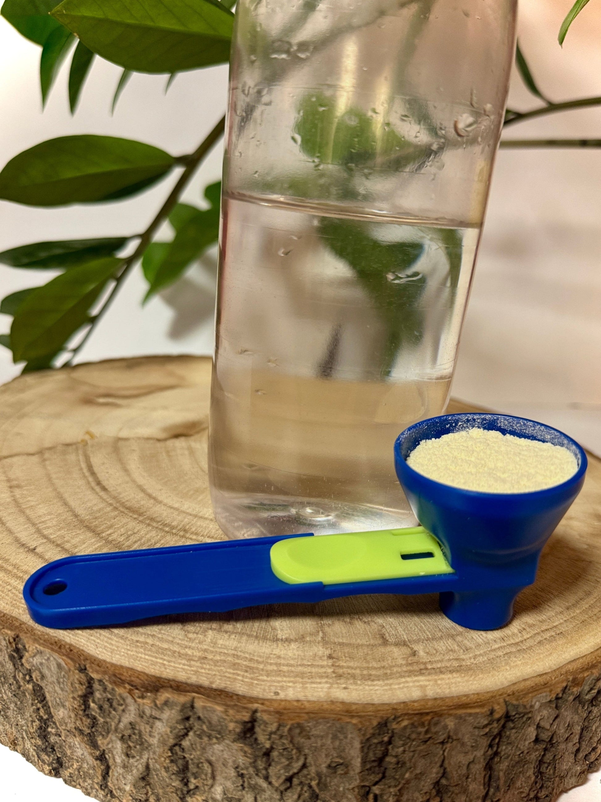Chytrá lžička s výklopným dnem a protisypací lištou – ideální pro přesné dávkování doplňků, proteinů, prášků nebo sběratelských vzorků.